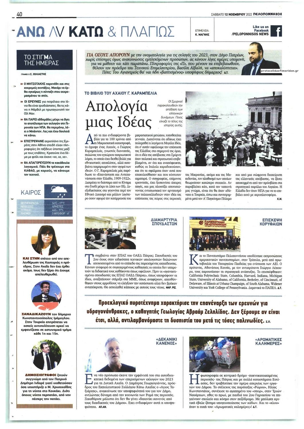 Σε αυτή τη σελίδα θα βρείτε το πρωτοσέλιδο της εφημερίδας Πελοπόννησος που κυκλοφόρησε Σάββατο 12 Νοεμβρίου 2022. Για να διαβάσετε το πρωτοσέλιδο της εφημερίδας Πελοπόννησος σε μεγαλύτερο μέγεθος κρατήστε το ποντίκι πατημένο πάνω στο μεγάλο πρωτοσέλιδο Πελοπόννησος και σύρετε προς την κατέυθυνση που θέλετε. Για να δείτε το ιστορικό αρχείο της εφημερίδας Πελοπόννησος πατήστε εδώ ή πατήστε από μενού "Αρχείο" και επιλέξτε από τη λίστα Πελοπόννησος.