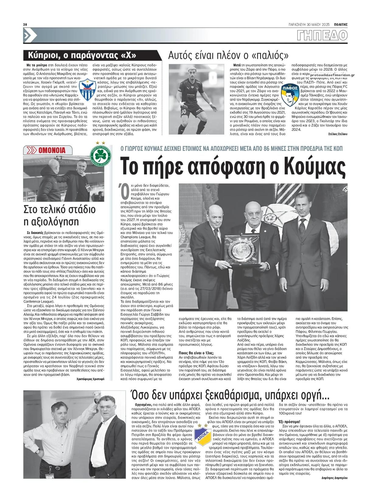 Διαβάστε το πρωτοσέλιδο της εφημερίδας Πολίτης Κύπρου