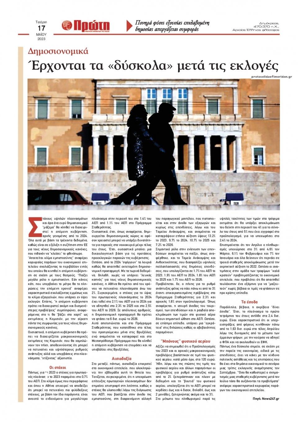 Διαβάστε το πρωτοσέλιδο της εφημερίδας Πρώτη
