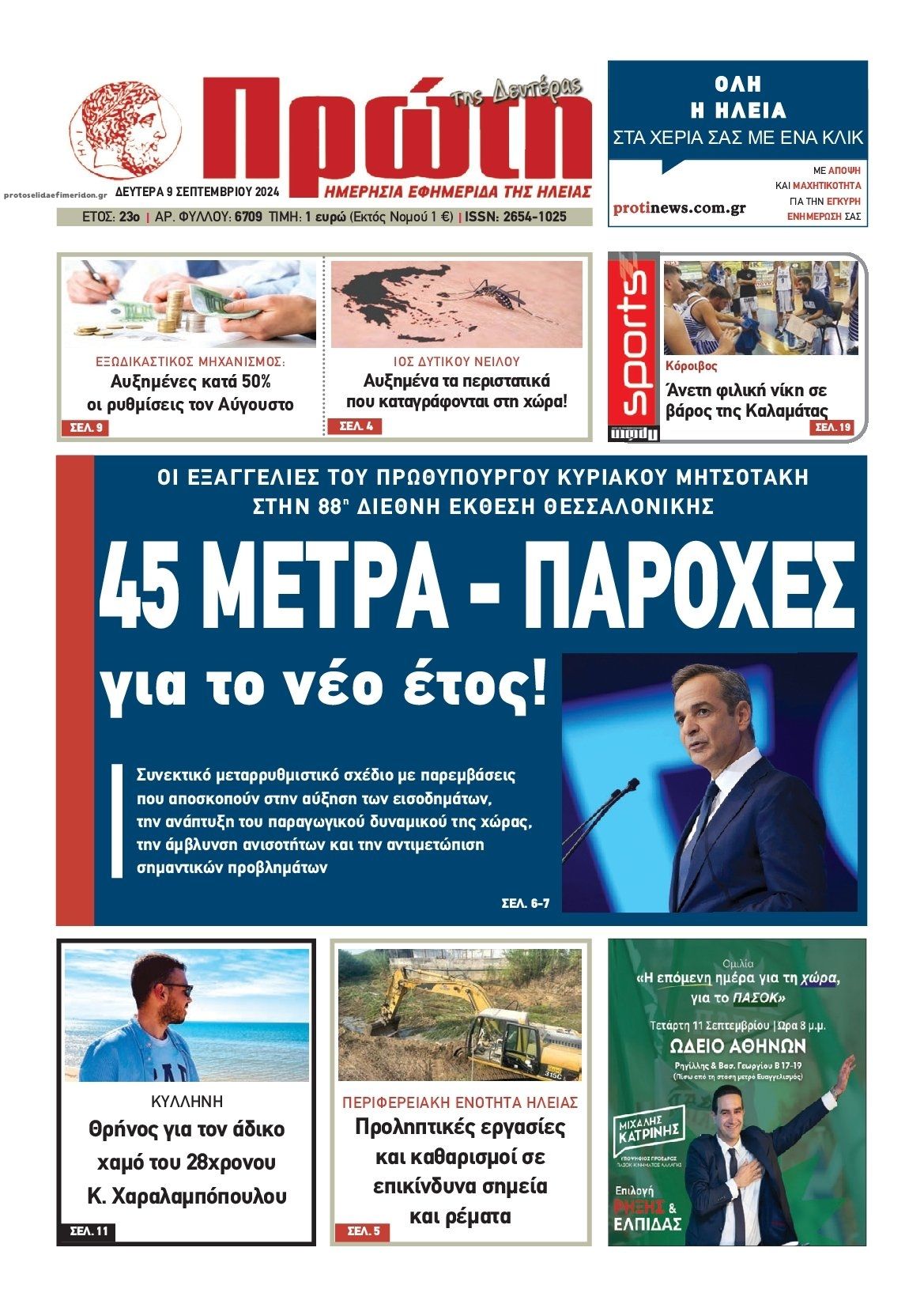 Διαβάστε το πρωτοσέλιδο της εφημερίδας Πρώτη