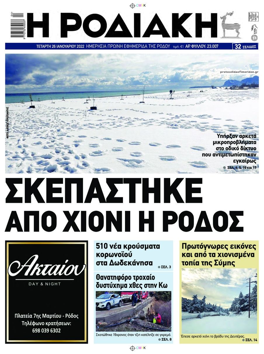 Διαβάστε το πρωτοσέλιδο της εφημερίδας Ροδιακή