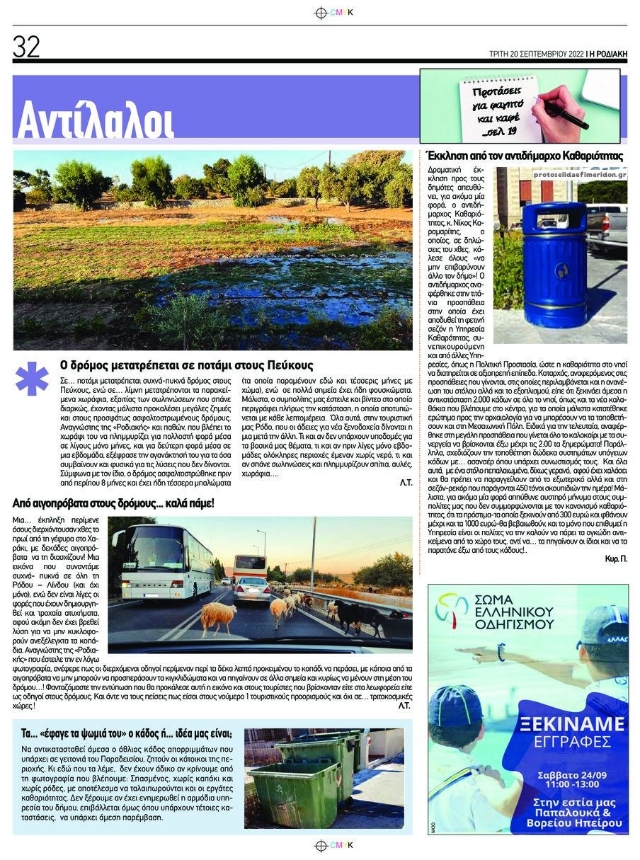 Διαβάστε το πρωτοσέλιδο της εφημερίδας Ροδιακή