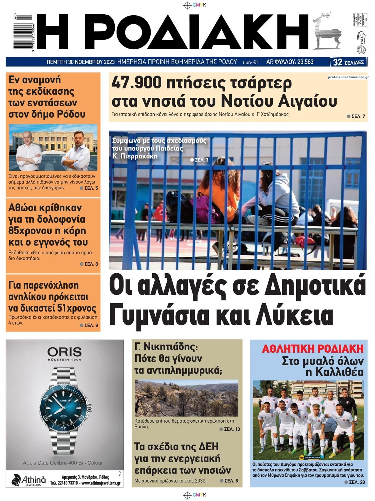 Διαβάστε το πρωτοσέλιδο της εφημερίδας Ροδιακή