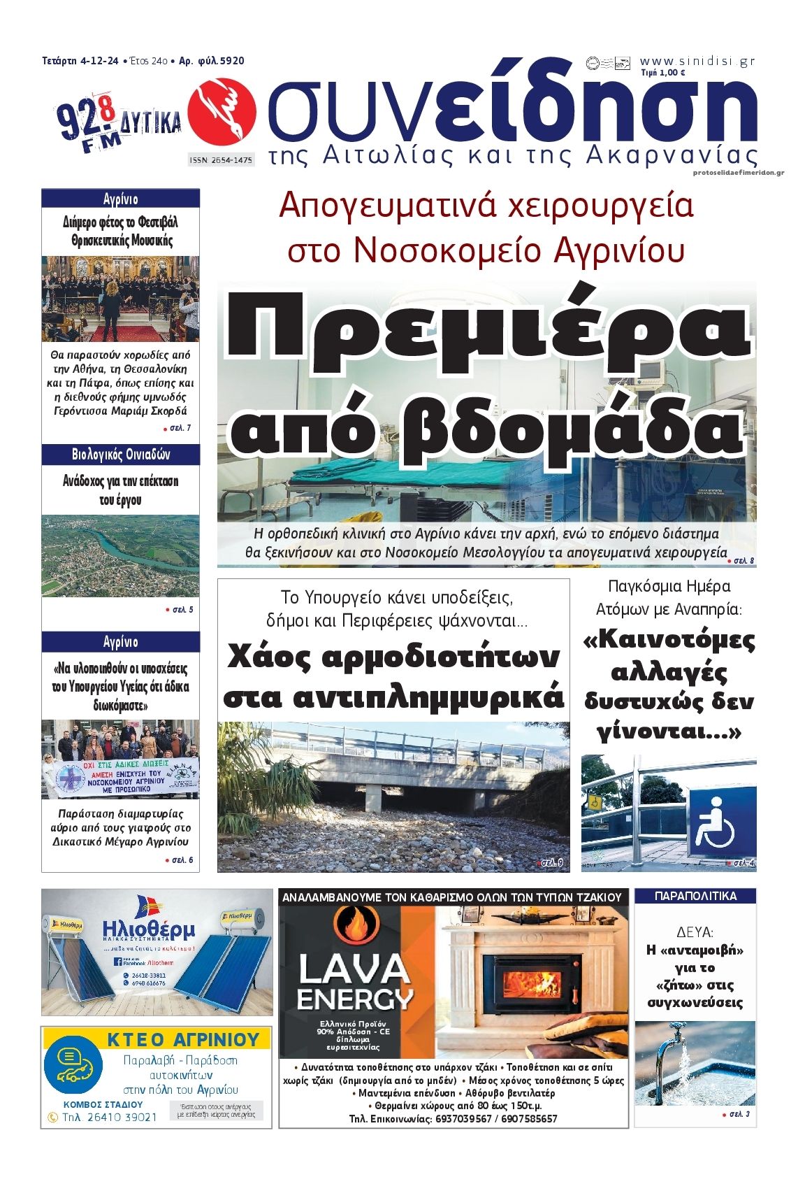 Σε αυτή τη σελίδα θα βρείτε το πρωτοσέλιδο της εφημερίδας Η Συνείδηση που κυκλοφόρησε Τετάρτη 4 Δεκεμβρίου 2024. Για να διαβάσετε το πρωτοσέλιδο της εφημερίδας Η Συνείδηση σε μεγαλύτερο μέγεθος κρατήστε το ποντίκι πατημένο πάνω στο μεγάλο πρωτοσέλιδο Η Συνείδηση και σύρετε προς την κατέυθυνση που θέλετε. Για να δείτε το ιστορικό αρχείο της εφημερίδας Η Συνείδηση πατήστε εδώ ή πατήστε από μενού "Αρχείο" και επιλέξτε από τη λίστα Η Συνείδηση.