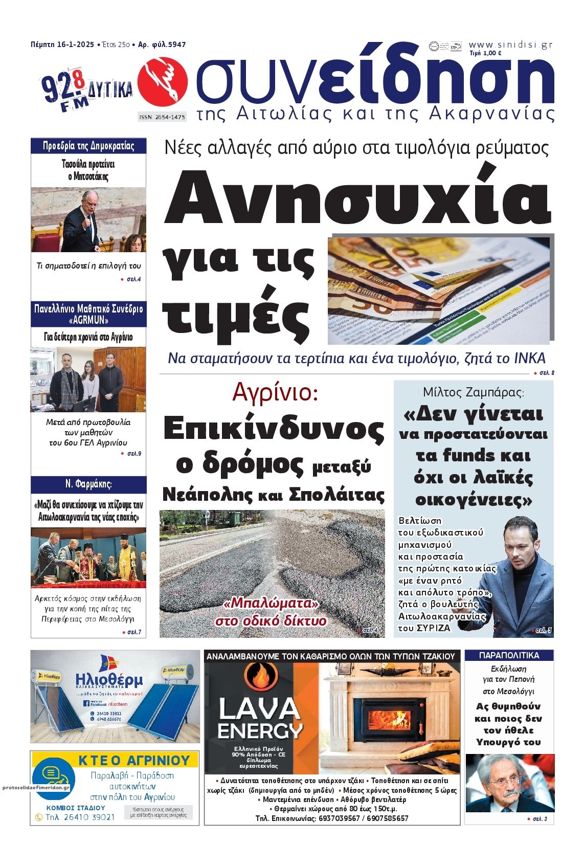 Διαβάστε το πρωτοσέλιδο της εφημερίδας Η Συνείδηση