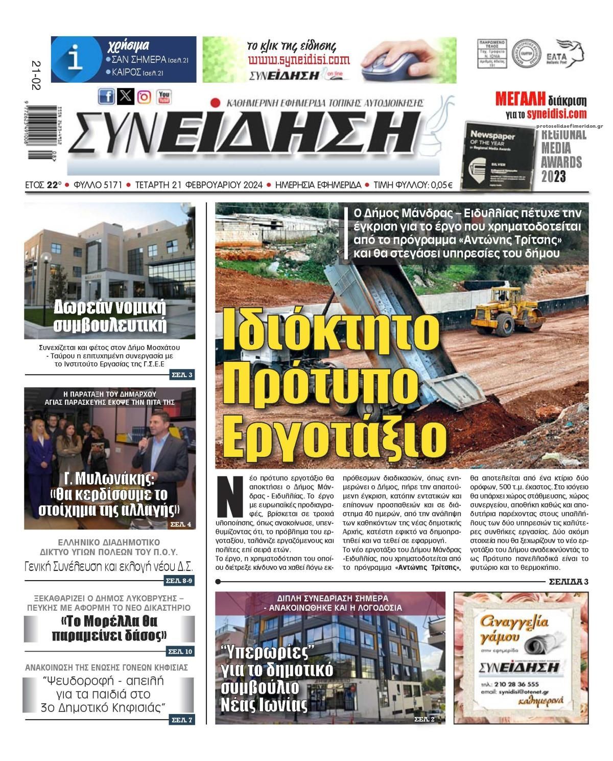 Διαβάστε το πρωτοσέλιδο της εφημερίδας Συνείδηση