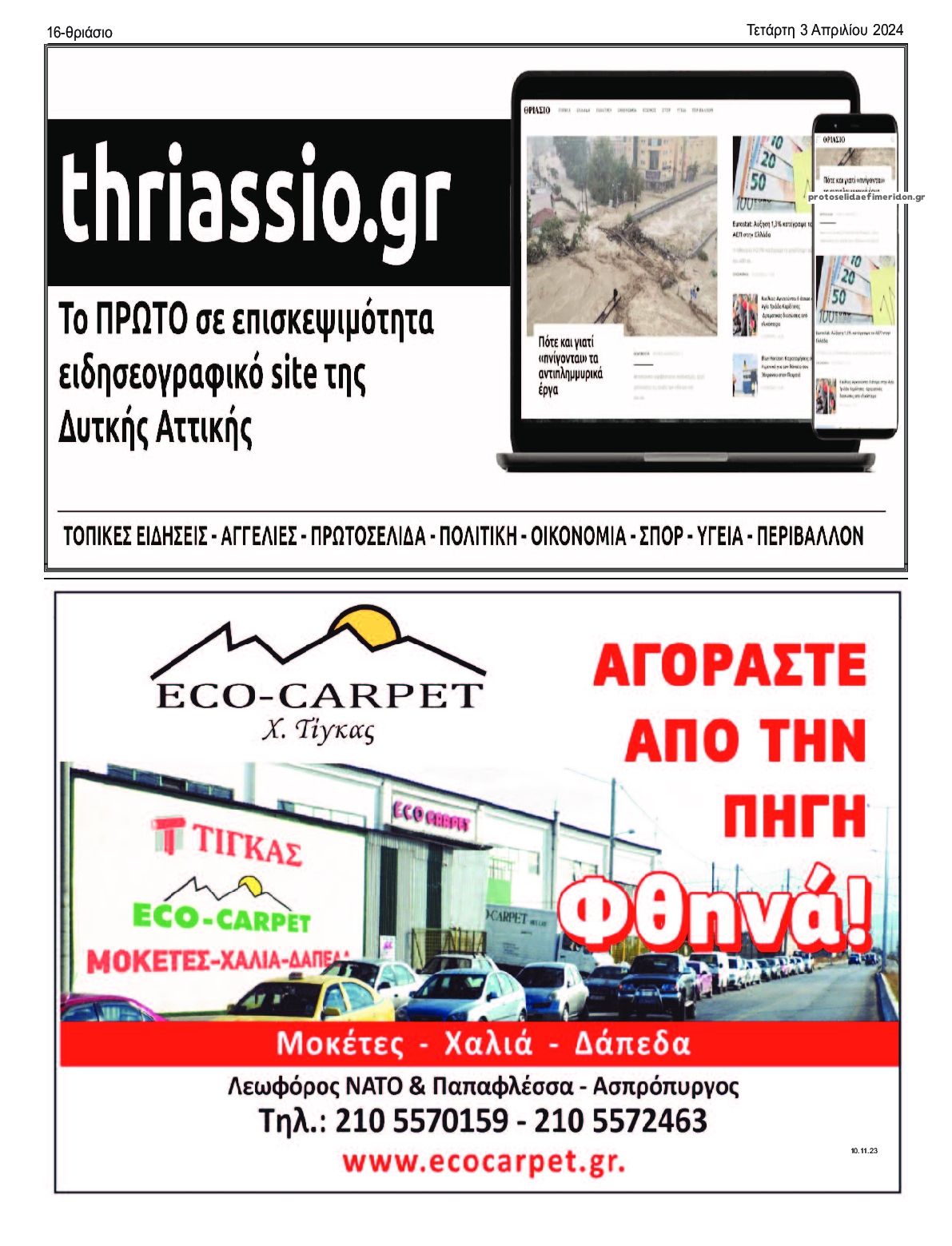Διαβάστε το πρωτοσέλιδο της εφημερίδας Θριάσιο